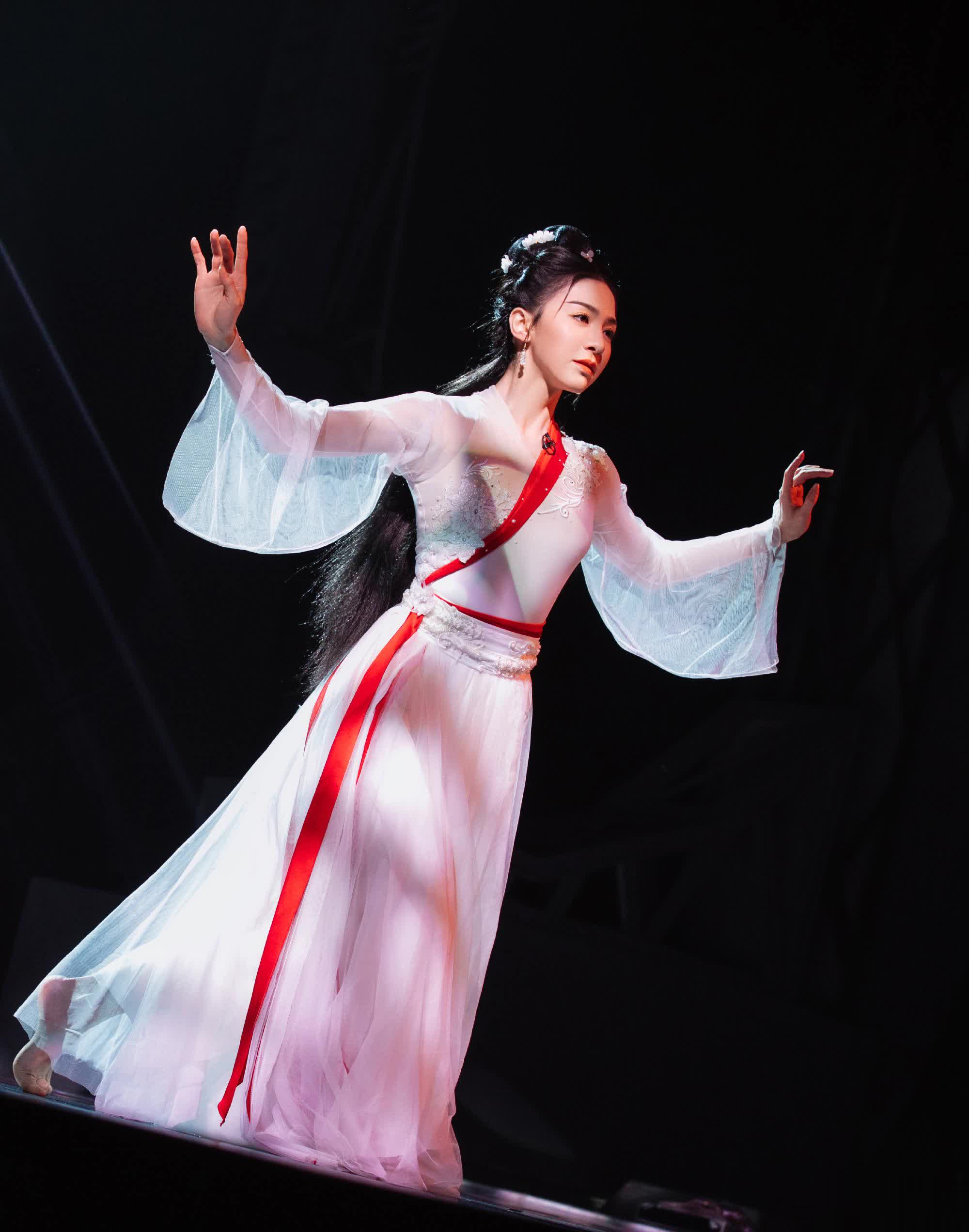 剧中有沈佳艺的独舞片段,跳的也是唐诗逸在中美舞林比赛里的那段水袖,可以说非常还原故事,更是将唐诗逸的故事搬上了舞台!