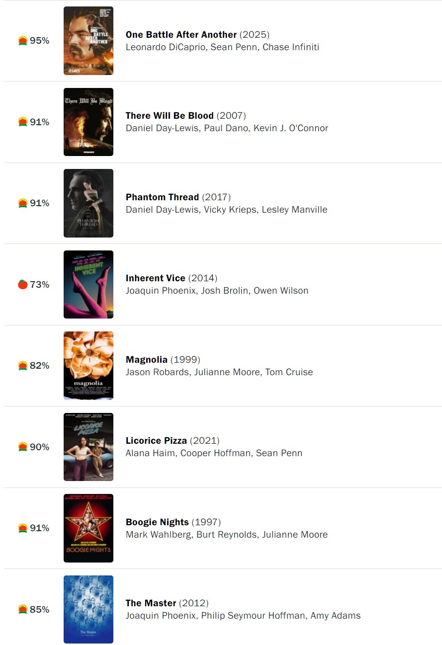 然而,今年55岁的他始终欠缺一些“金运”——曾11次获得奥斯卡提名,却次次铩羽而归。不过,在《综艺》《洛杉矶时报》等媒体最近公布的下一届奥斯卡奖的预测中,新作《一战再战》俨然已是数一数二的大热门,或许,PTA的突破就在不远的前方。